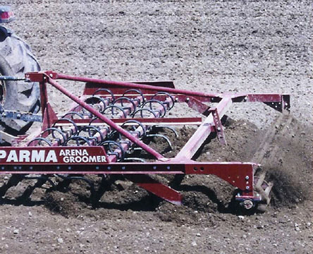 Available in 8', 10' and 12' sizes. Ideal for racetracks and large arenas. These groomers have a full 3 rows of s-tines for the best surface conditioning. You will need a minimum 30 hp tractor to pull these groomers. Take advantage of our special offer of 10% off your order with the purchase of 10,000 lbs. of crumb rubber horse arena footing!